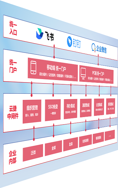 对协作平台提供支持服务,,支持企业应用与协作平台对接,,,,包含组织同步、、、、消息集成、、、、待办集成等。。。。支持目前主流的协作平台:钉钉、、、、企微和飞书。。